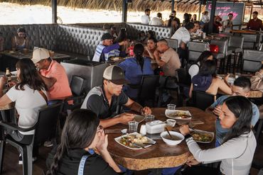 Descubra la mejor experiencia gastronómica frente al mar de Guatapé. Nuestro restaurante ofrece una exquisita variedad de delicias culinarias para satisfacer todos los paladares. Reconocido por la selección más fresca y más grande de pescado en Guatapé, le invitamos a saborear nuestros platos de alta calidad mientras disfruta de impresionantes vistas de las aguas serenas. Acompáñenos en una aventura gastronómica inolvidable que combina una comida excepcional con un paisaje impresionante.